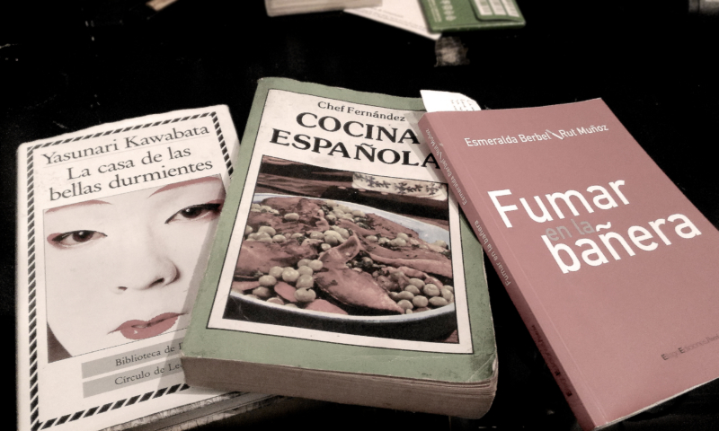 Els llibres escollits varen ser: Fumar en la Bañera, Esmeral Berbel i Rut Muñoz, Cocina Española, (Chef Fernández) i La Casa de las Bellas Durmientes (Yasunari Kawabata). El motiu de les eleccions? Simplement eren els que estaven més a la vista i suposo també que el títol era “suggerent”.